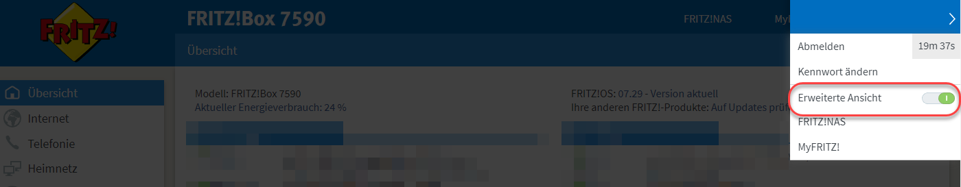 Voraussetzung: Fritzbox Weboberfläche mit Erweiterter Ansicht: